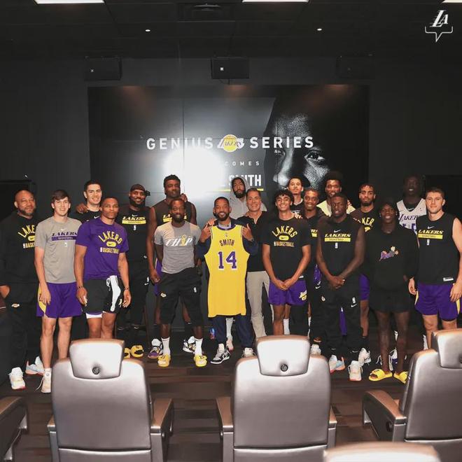 值得一提的是,第二天,湖人官方发布了全队与史密斯的合照。照片中,詹姆斯笑得非常灿烂,而几步之外的威少满脸阴沉。