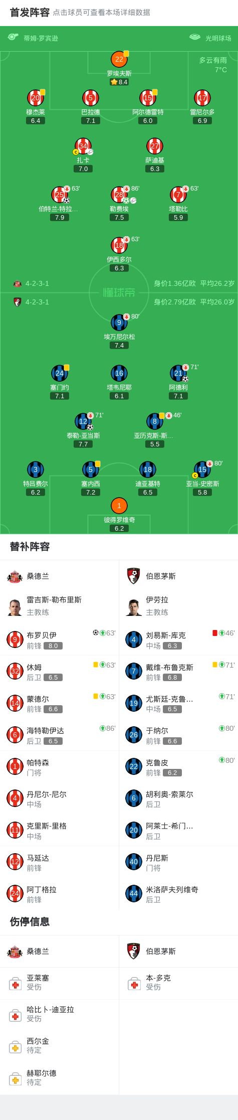 第7分钟,阿德利门前补射破门,伯恩茅斯1-0桑德兰